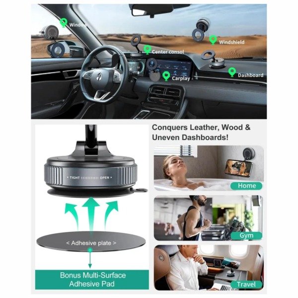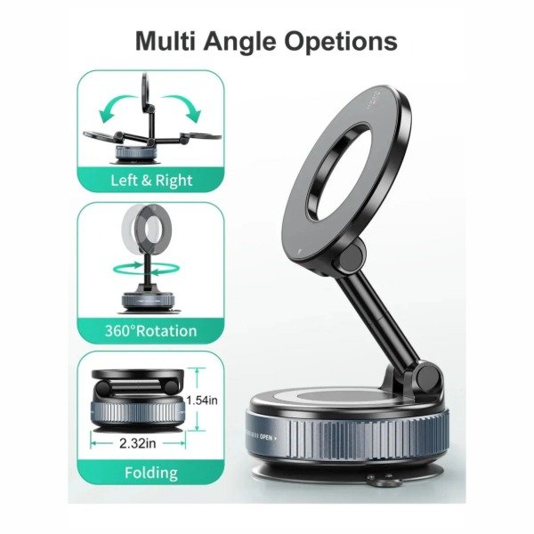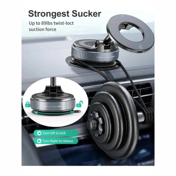 Soporte magnético con ventosa de succión potente, ideal para el auto, oficina o hogar.