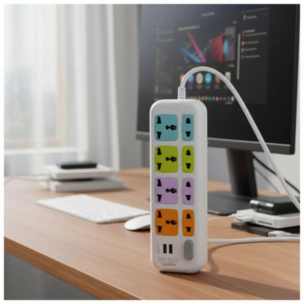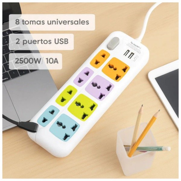 - 🔌 8 Tomas Universales: Conecta hasta 8 aparatos simultáneamente. Compatible con enchufes de diferentes formatos (universal).