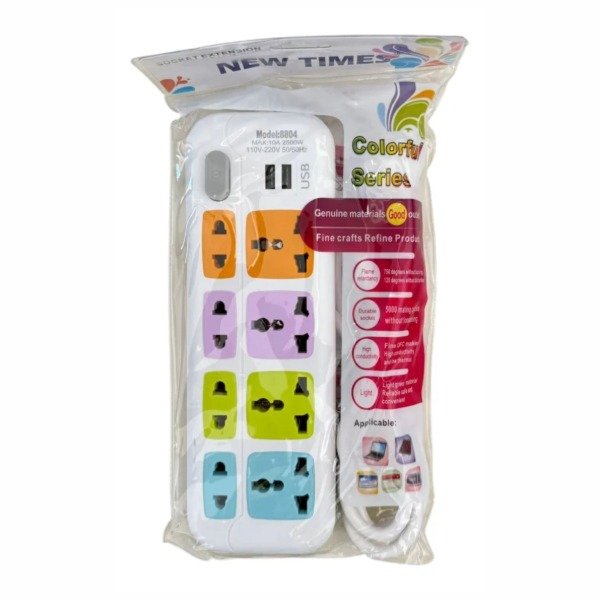 ¡No te quedes sin enchufes! La zapatilla eléctrica New Time 8804 es la solución ideal para conectar y cargar todos tus dispositivos con total seguridad.