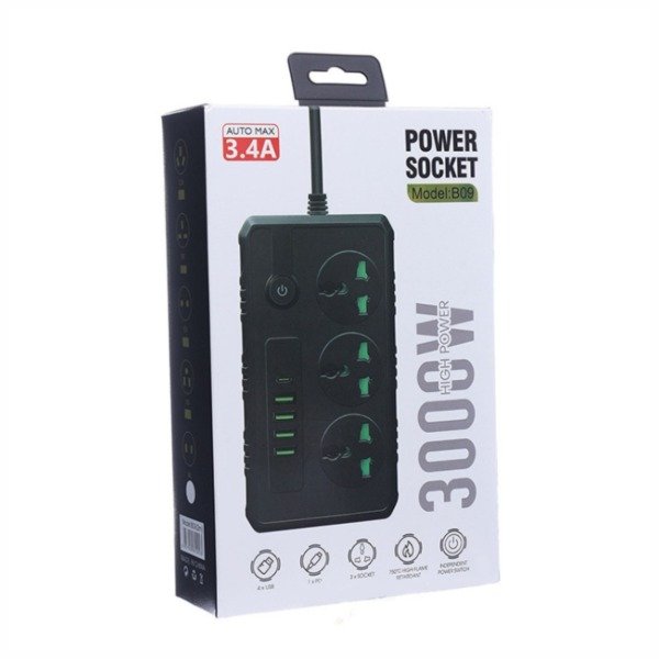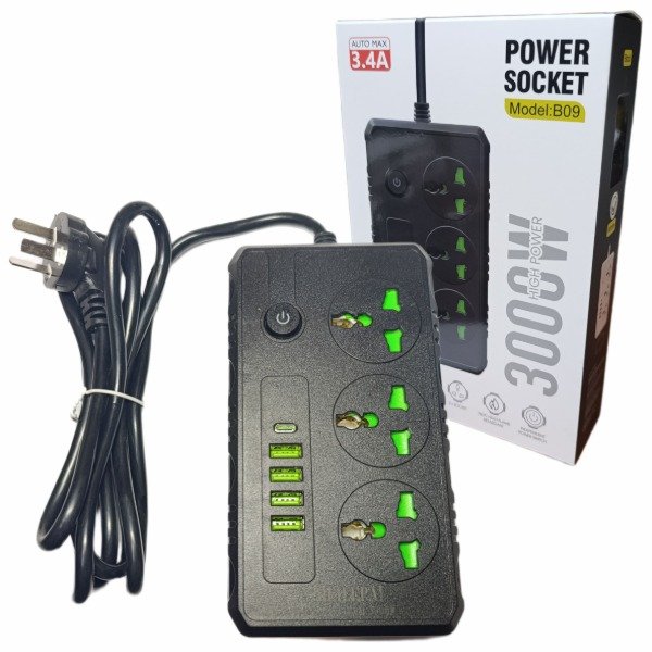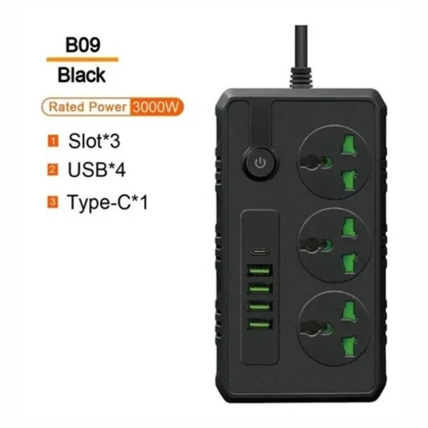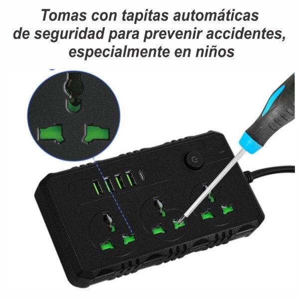• 🔲 3 tomas universales (admite todo tipo de enchufes)
