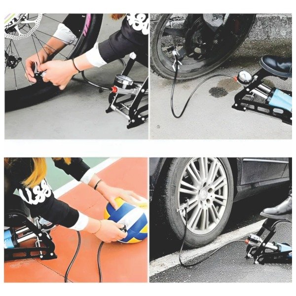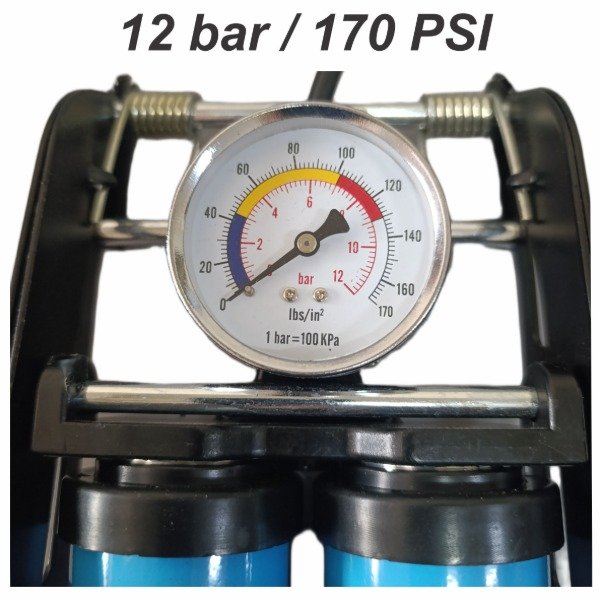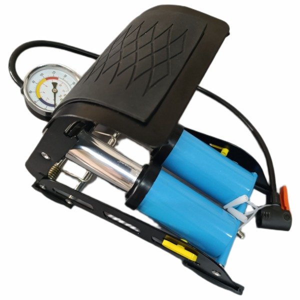 🚲🚗 INFLADOR DE PIE CON MANÓMETRO – DOBLE CILINDRO ALTA PRESIÓN 💨⚙️