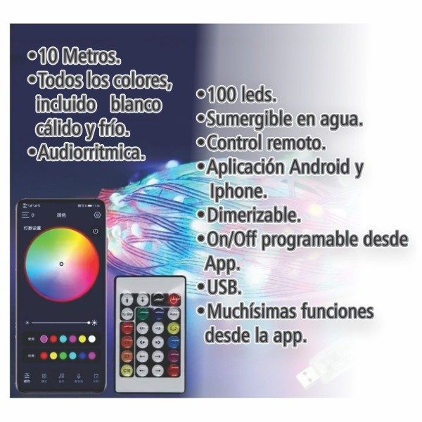 • 💡 Cantidad de luces: 100 LED