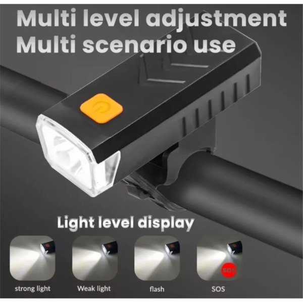 LUZ BICI DELANTERA RECARGABLE USB TIPO C 4 FUNCIONES D01