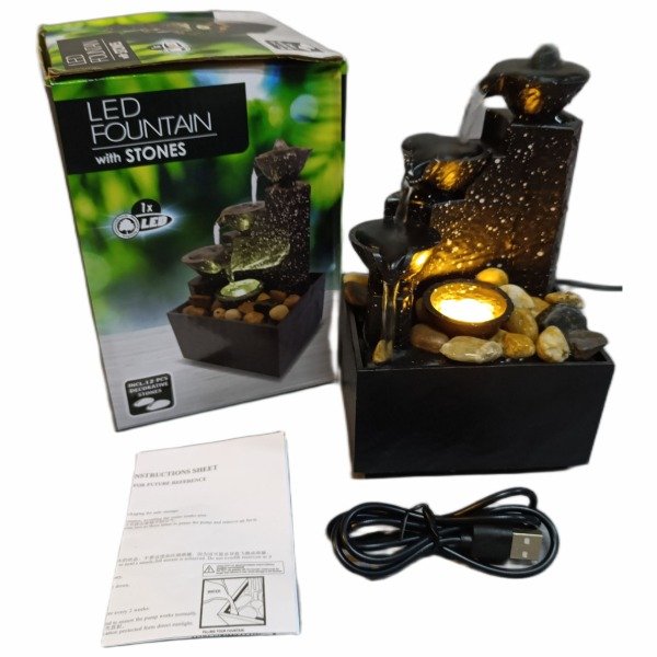 • Incluye: Fuente, cable USB, piedras decorativas y manual