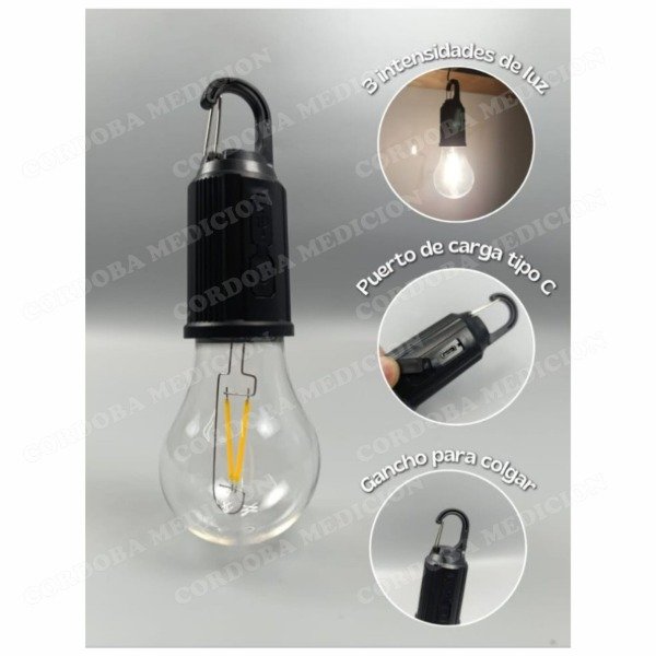 LAMPARA LED FOCO RECARGABLE PORTATIL CAMPING JARDIN USB